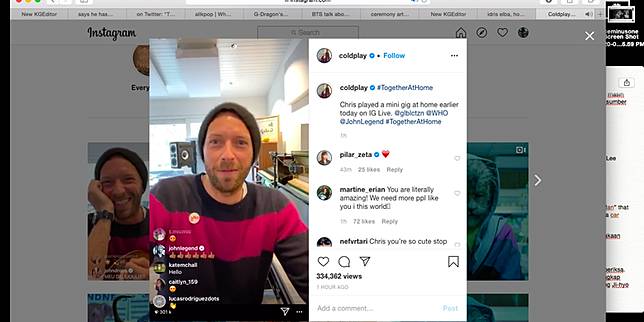 Watch Chris Martin S Togetherathome Instagram Concert Video